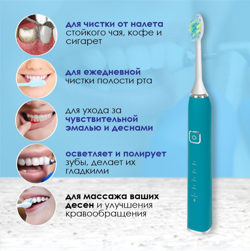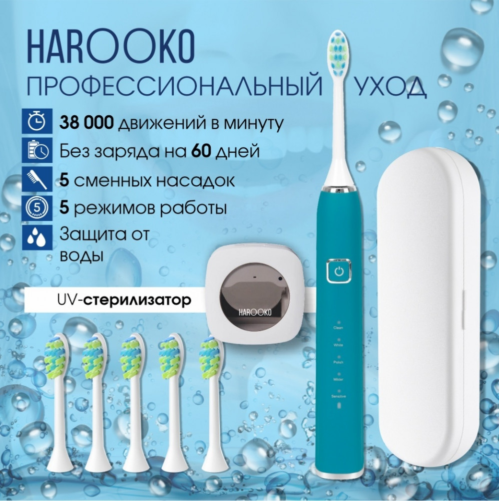 Преимущество электрической зубной щетки HAROOKO ультразвуковая AM1: зубная эмаль абсолютно не повреждается, технология возвратно-вращательного механизма чистки позволяет очищать межзубное пространство с одновременным естественным отбеливанием зубной поверхности. Щётка изготовлена из пищевой полипропилена, не токсична, без запаха и абсолютно безопасна. В комплекте: 5 насадок, что позволит 1,5 года не докупать дополнительные насадки, кейс — удобен для транспортирования — в отпуск, в командировку, а также стерилизатор. Стерилизатор позволяет за несколько секунд обеззаразить щетку, что уберет необходимость дезинфицировать щетку специальными растворами. Округлая форма и мягкие щетинки позволяют избежать травмирование десны.