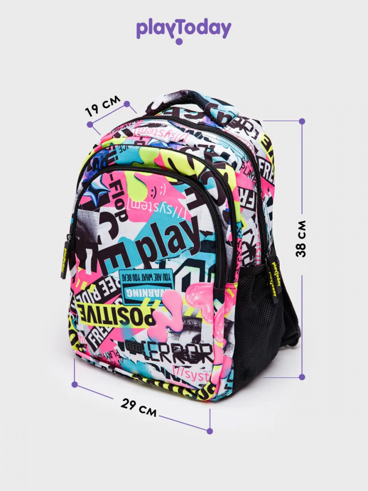 PlayToday Рюкзак для девочек-40% +128 вместительный яркий много отделений замки открываются