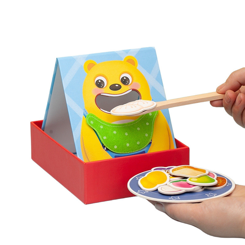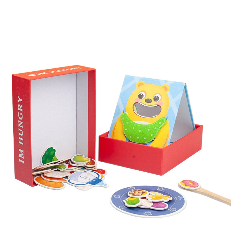 BeeZee Toys Набор игровой «Голодный медведь»В данный момент этот товар отсутствует в продаже. Возможно, у нас найдется аналогичный или похожий товар здесь. У Вашего ребенка теперь есть возможность почувствовать себя в роли заботливого друга медвежонка и накормить его. А заодно и потренировать свои пальчики, поучиться пользоваться ложкой, повторить названия всех продуктов. Игра выполнена из безопасных материалов: ложечка деревянная, продукты из EVA экологичного каучука, фигурка мишки из плотного картона. |