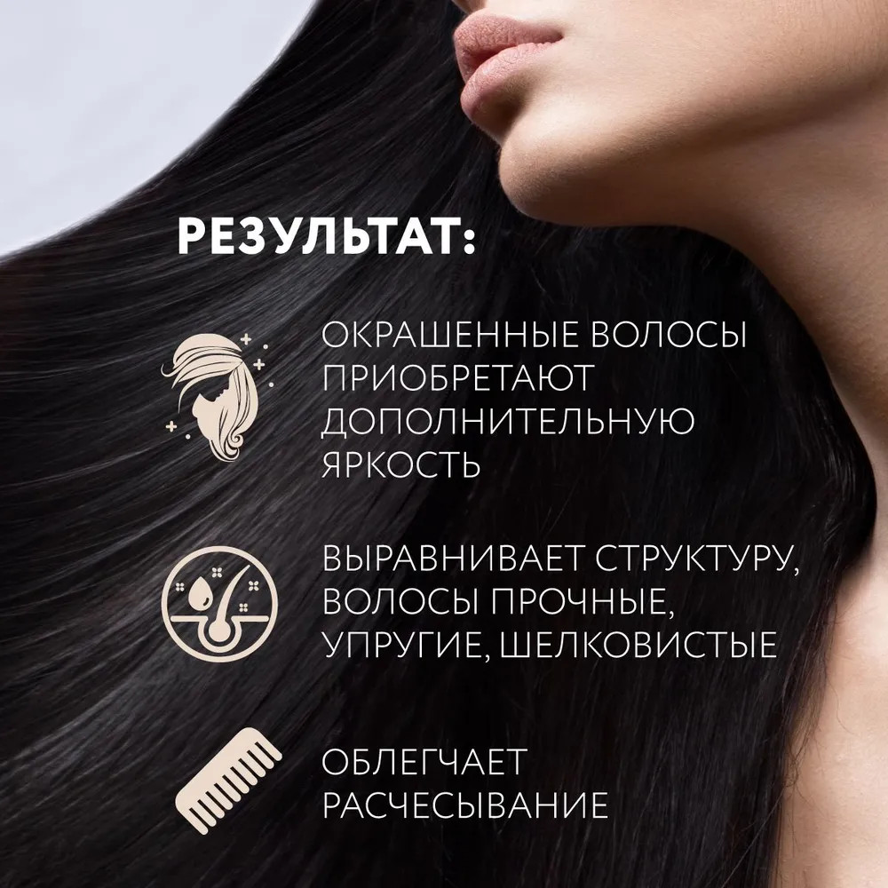 Маска понравилась, даже не пришлось пользоваться маслом после мытья. Блеск и шелковистость с первого применения .