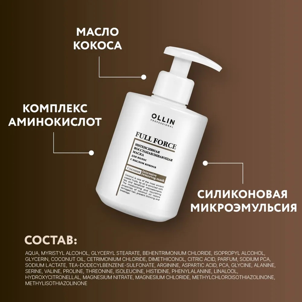 Ollin Professional Маска для волос восстанавливающая с маслом кокоса