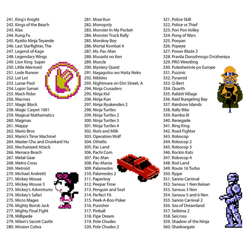 💳 Оплатить за товар можно при получении 🇰🇿 Есть бесплатная доставка по Казахстану от 1 дня 🎁 Копите бонусы с каждой покупки Максимальный объем и максимальное количество популярных игр в одном картридже! С играми на русском языке! Предлагаем вашему вниманию большой сборник для игровой видеоприставки Денди 8 бит. Все наши любимые игры Денди теперь в маленьком картридже! Только полные версии 476 игр и 2 дополнительные версии Battletoads и Battletoads Double Dragon для всех типов приставок. Всего лишь 1 картридж и за игрой можно провести много часов. В сборник вошли игры на одного и двух игроков, игры для пистолета, увлекательные тетрисы, интересные головоломки и логические игры, разрушительные боевики, космические стрелялки, легендарные черепашки, боевые жабы, танчики и множество приключений мультяшных героев. Еще одна особенность — часть игр, включенных в сборник, переведены на русский язык! Включай и играй, ваше приключение начинается! |