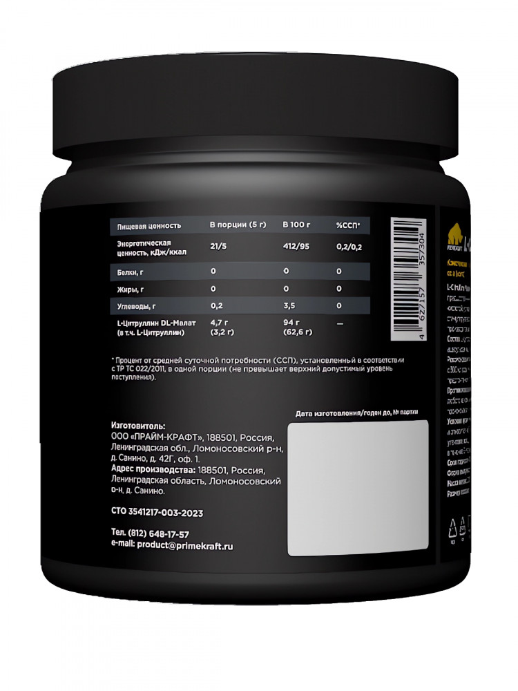PRIMEKRAFT L-Citrulline Malate со вкусом cola (кола)В данный момент этот товар отсутствует в продаже. Возможно, у нас найдется аналогичный или похожий товар здесь. Цитруллин-малат со вкусом Колы — это эффективный комплекс для повышения силовой выносливости и ускорения процесса восстановления мышечных волокон с ярким, освежающим и бодрящим вкусом Колы. Цитруллин — аминокислота азотной группы, участвующая в выработке аргинина в организме. Молекулы цитруллина обладают высокой степенью усвояемости в сравнении с биодоступностью аргинина, а также циркулируют в крови дольше. |
