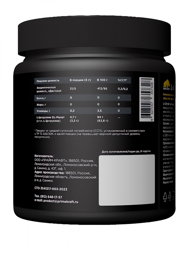 PRIMEKRAFT L-Citrulline Malate со вкусом citrus mix (цитрусовый микс)-20% +166