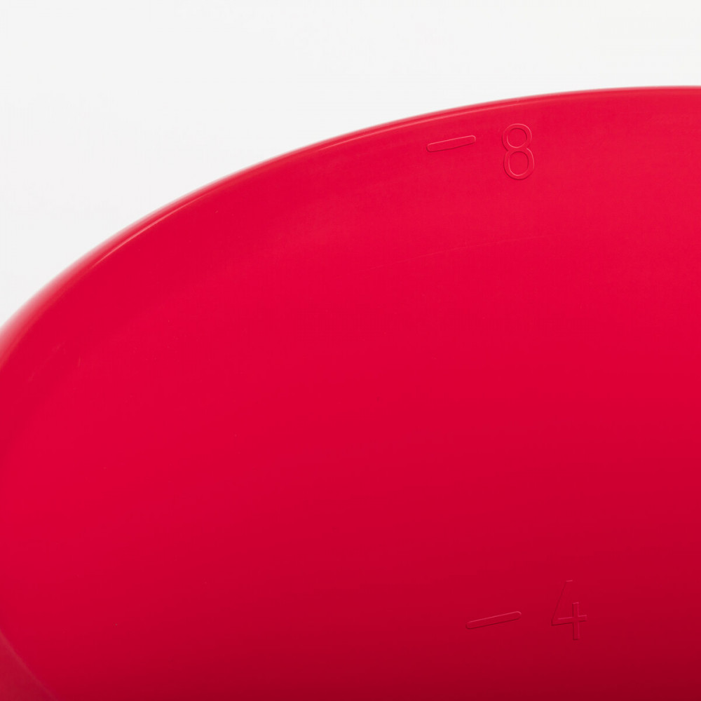 Хороший прочный пластик, пищевой, без запаха. Есть риска 6 л, примерно на 1 см ниже края. По высоте ведёрко такое же, как стандартное пятилитровое, но шире по обхвату. Цвет приятный. Ручки удобные. Пользуюсь с удовольствием! Качество полностью устраивает.