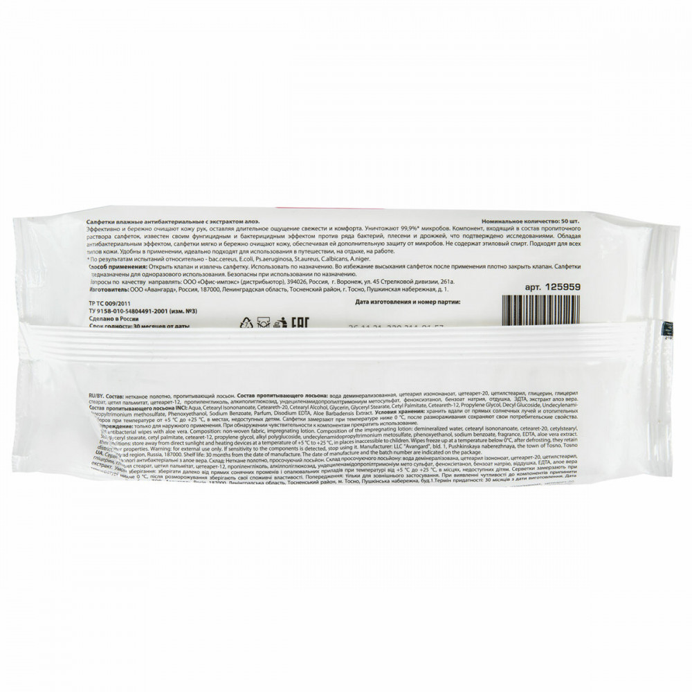 💳 Оплатить за товар можно при получении 🇰🇿 Есть бесплатная доставка по Казахстану от 1 дня 🎁 Копите бонусы с каждой покупки Антибактериальные влажные салфетки с экстрактом алоэ Laima идеально подходят для использования в офисе, дороге, дома, незаменимы на отдыхе и во время прогулок. Изготовлены из нетканого материала, не содержат спирт. Прекрасно очищают и освежают кожу, придают приятный аромат. Обладают увлажняющим и тонизирующим эффектом. В упаковке 50 штук. Размер салфетки в развернутом виде — 190 × 150 мм. Упаковка выполнена с удобным клеевым клапаном, предотвращающим высыхание салфеток. |