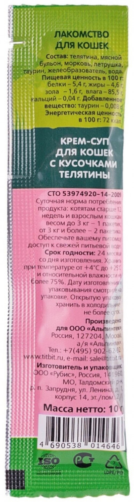 Отзывы «Набор крем-супов для кошек с кусочками телятины»