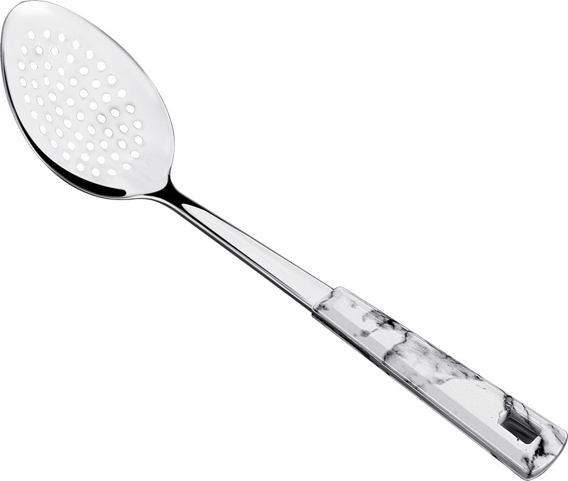 Новые кухонные навески призваны не только облегчить процесс приготовления пищи, но и добавить приятные акценты в интерьер кухни. В линии входят ложки кулинарные, ложки разливательные, лопатки, лопатки с прорезями, лопатки сервировочные и шумовки. Стильные и оригинальные аксессуары не только с блеском будут выполнять свою основную функцию, но и привнесут в интерьер гармоничные штрихи, делая пребывание на кухне максимально комфортным. Все изделия изготовлены из высококачественной нержавеющей стали. Гладко отполированные края, бережно взаимодействуют с посудой. Роскошная рукоять «под мрамор» изготовлена из жаропрочного и ударостойкого полипропилена. Приятно держать в руках.