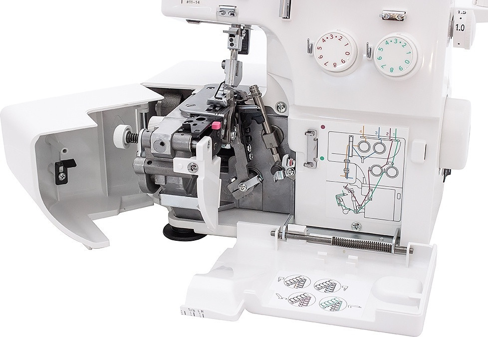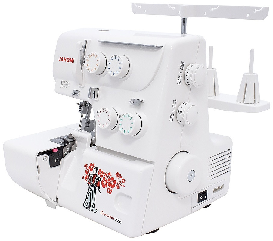 Оверлок «Samurai 888» — может выполнять все самые необходимые виды швов с использованием 2-х, 3-х или 4-х нитей. Уникальный дизайн этой модели с принтом в виде самурая и цветущей сакуры напоминает о родине компании Janome — Японии. Прекрасно сочетается со швейной машиной «Janome Ami 10». Имеет высокую мощность двигателей 90ВТ, что положительно влияет на скорость шитья и позволяет справляться с большинством видов тканей.