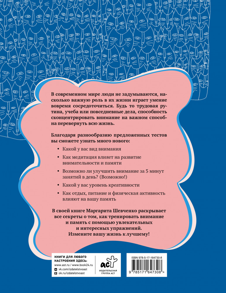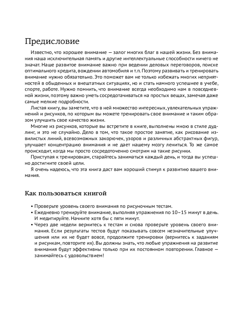 💳 Оплатить за товар можно при получении 🇰🇿 Есть бесплатная доставка по Казахстану от 1 дня 🎁 Копите бонусы с каждой покупки Серия: Рисуночные тесты В современном мире люди не задумываются, насколько важную роль в их жизни играет умение вовремя сосредоточиться. Будь то трудовая рутина, учеба или повседневные дела, способность сконцентрировать внимание на важном способна перевернуть всю жизнь. В своей книге Маргарита Шевченко раскрывает все секреты о том, как тренировать внимание и память с помощью увлекательных и интересных упражнений. Измените вашу жизнь к лучшему! |