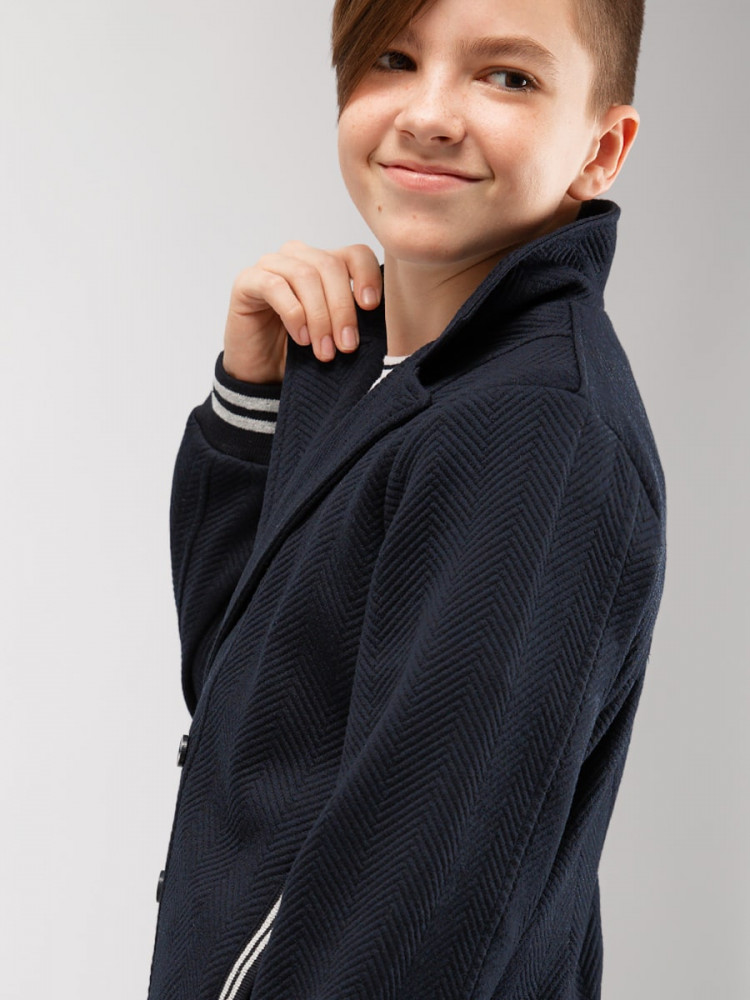 Пиджак для мальчика «Соль&Перец». Рукава и низ изделия с широкими эластичными манжетами. Модель идеально сочетается с брюками любого фасона и подойдет как для школы, так и для торжественного мероприятия.