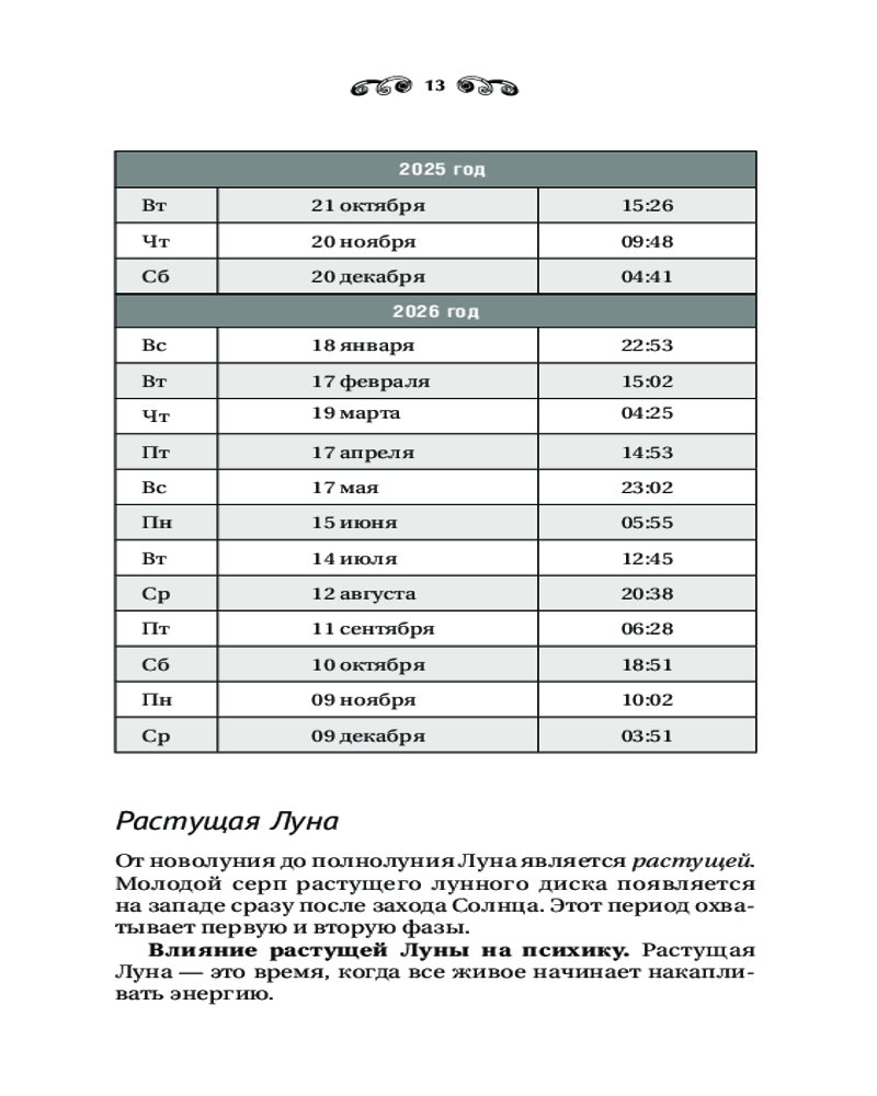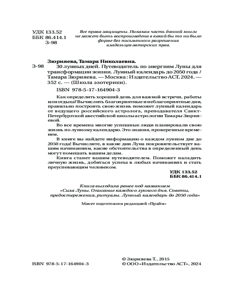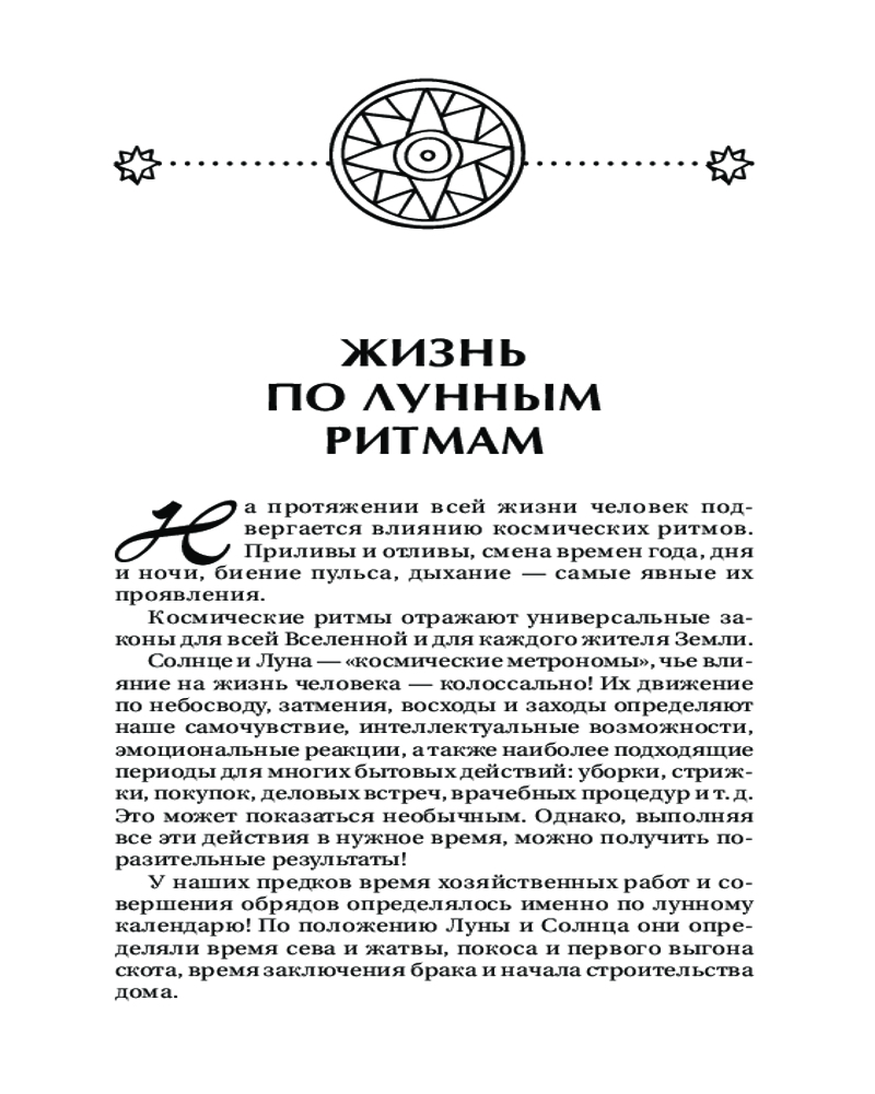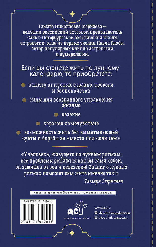 30 лунных дней. Путеводитель по энергиям Луны для трансформации жизни. Лунный календарь до 2050 годаВ данный момент этот товар отсутствует в продаже. Возможно, у нас найдется аналогичный или похожий товар здесь. Серия: Школа эзотерики На протяжении всей жизни человек подвергается влиянию космических ритмов. Во все времена многие успешные люди планировали свою жизнь по лунному календарю. С Луной связаны скрытые тайные силы, которые влияют на подсознание человека. Поэтому учет положения Луны помогает распутать узлы проблем, а также избегать многих ошибок. Автор книги Тамара Зюрняева — ведущий российский астролог, преподаватель Санкт-Петербургской авестийской школы астрологии, предлагает разобраться в лунном календаре и лунных днях. В книге вы найдете информацию о каждом лунном дне до 2050 года! Вычислите, в какие дни Луна покровительствует вашим начинаниям, какие обстоятельства в определенный день могут помешать вашим делам. С помощью книги вы сможете составлять собственные прогнозы. |
