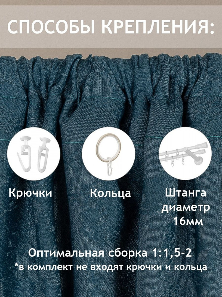Рекомендации по уходу: стирка при температуре до 40 градусов без применения отбеливателей и агрессивных стиральных порошков, сушка в расправленном виде в естественных условиях, гладить следует с изнаночной стороны на деликатном режиме. Изделие на шторной ленте и готово к использованию.