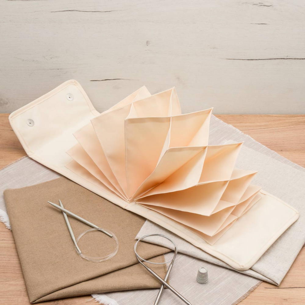 Папка-органайзер для круглых спиц — удобный чехол с восемью отделениями, который создан для того, чтобы ваши спицы всегда были аккуратно сложены и доступны даже вне дома.