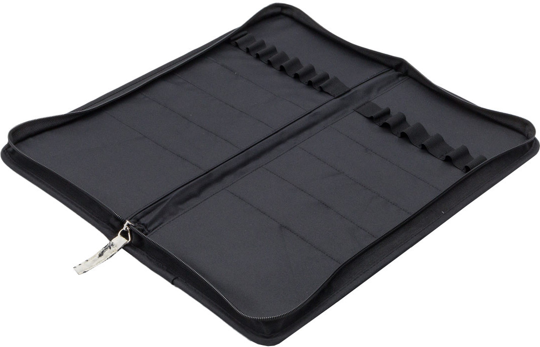 Его можно раскрыть как обычную папку благодаря круговой молнии, а внутреннее пространство, выполненное в черном цвете, оснащено 15 эластичными петлями, которые могут вместить спицы разнообразных типов и размеров.