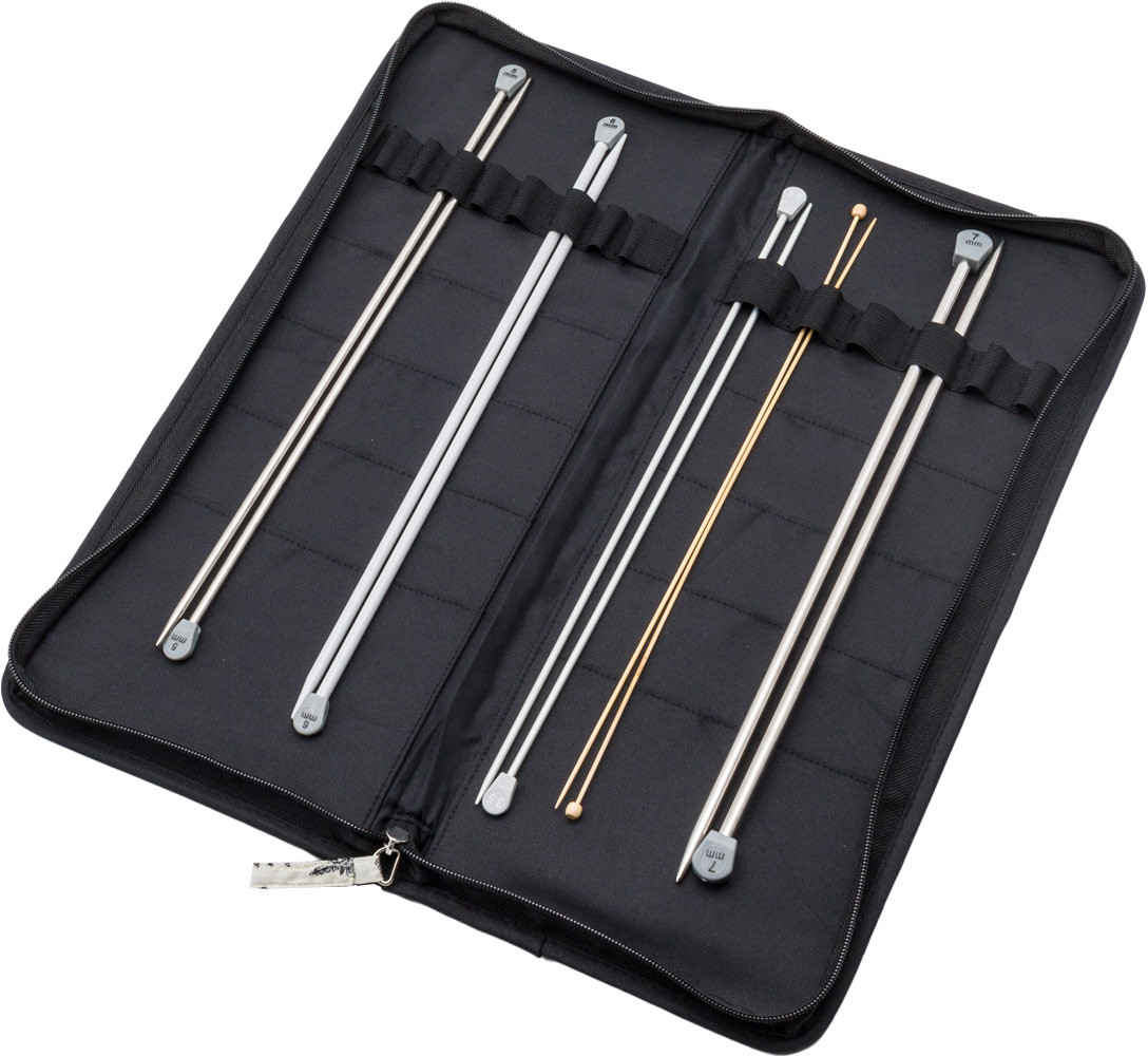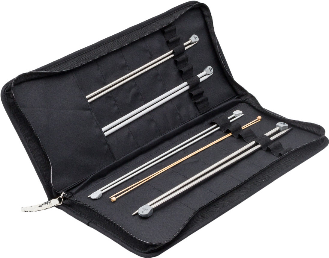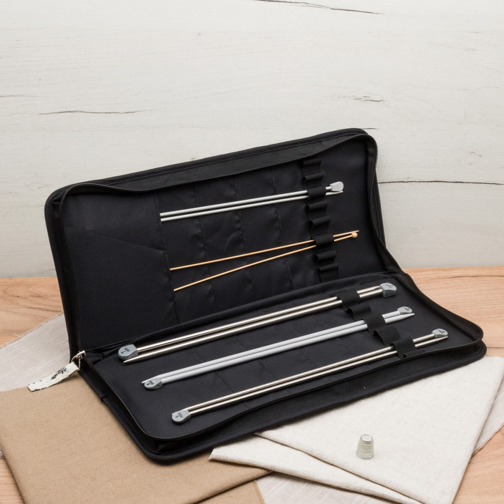 Кроме того, внутри есть 8 карманов для удобного размещения крючков, дополнительных спиц, инструментов для вязания кос, круговых спиц и других аксессуаров.