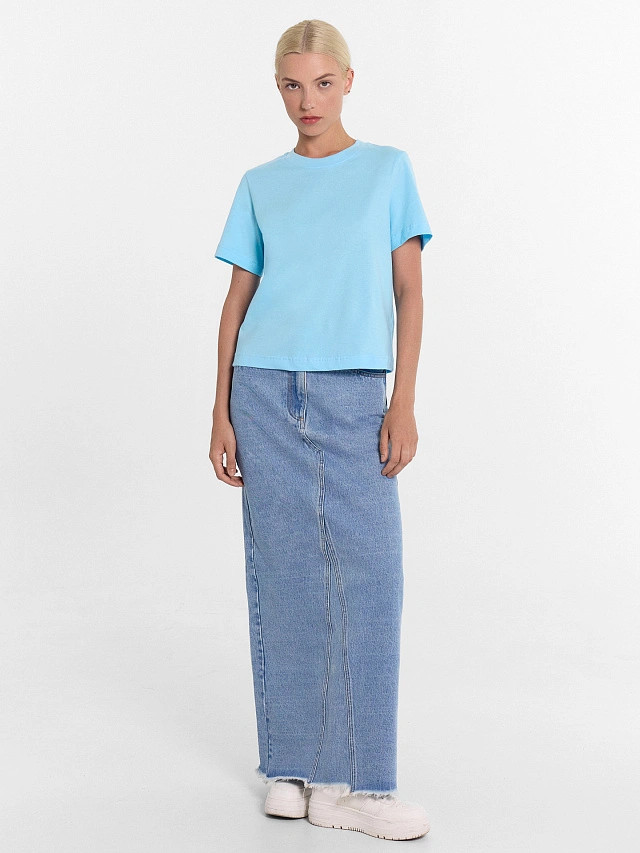 обычно беру размер хл, но у этой футболки свободный крой и л села лучше. нравятся длина, самое то для широких джинс.