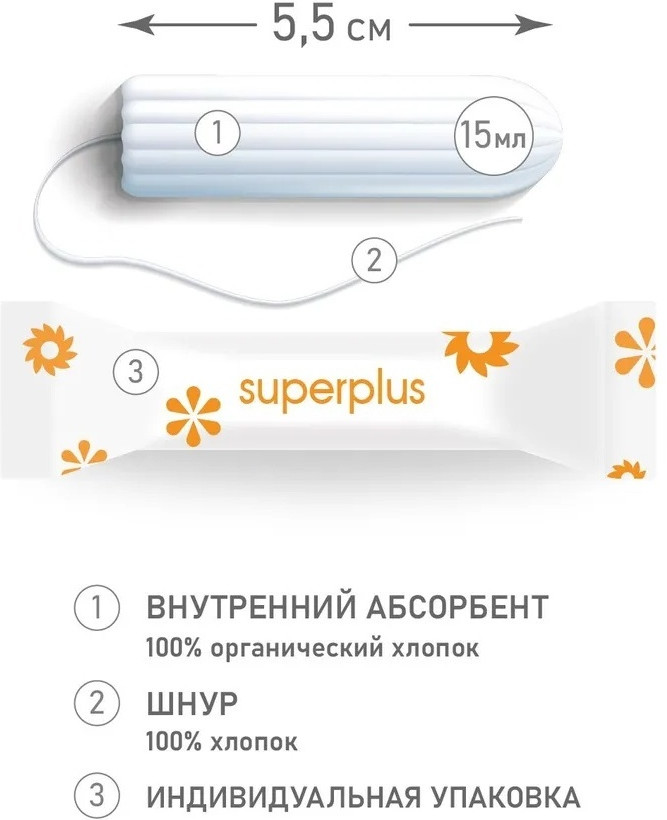 • абсорбирующий слой имеет защитное хлопковое покрытие, которое обеспечивает надежную защиту от расслоения и прилипания волокон в вашем теле;