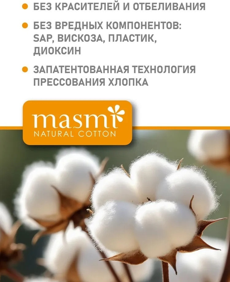 100% натуральные средства гигиены с заботой о женском здоровье и окружающем мире. Натуральные тампоны Masmi «Super Plus» сделаны из 100% органического хлопка и разработаны специально для нормальных и обильных выделений.