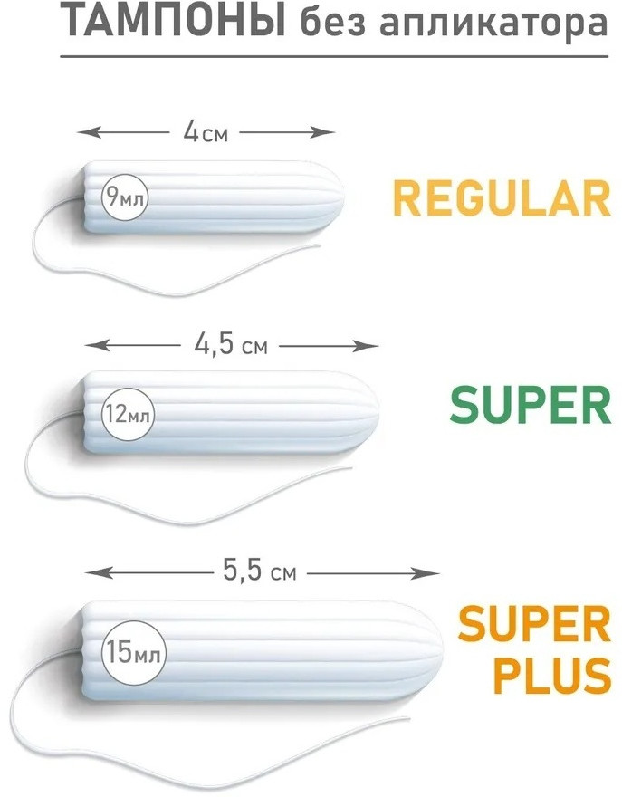 Рекомендации по применению: чистыми руками снимите защитную пленку, потянув за линию отрыва, снимите нижнюю часть защитной пленки. Примите удобную позу сидя или стоя и расслабьтесь. Расправьте шнур тампона, убедитесь, что оба конца шнурка соединены. Надавите указательным пальцем в основу тампона и снимите верхнюю часть защитной пленки. Аккуратно введите закругленный конец тампона во влагалище. Введите тампон как можно глубже под наклоном к нижней части спины. Если чувствуете сопротивление, немного измените направление тампона. Вытяжной шнурок должен находиться снаружи вашего тела. Если вы ощущаете тампон, введите его глубже. Не вводите тампон, если это вызывает болевые ощущения. Если тампон введен правильно, вы его не должны чувствовать. Помойте руки.