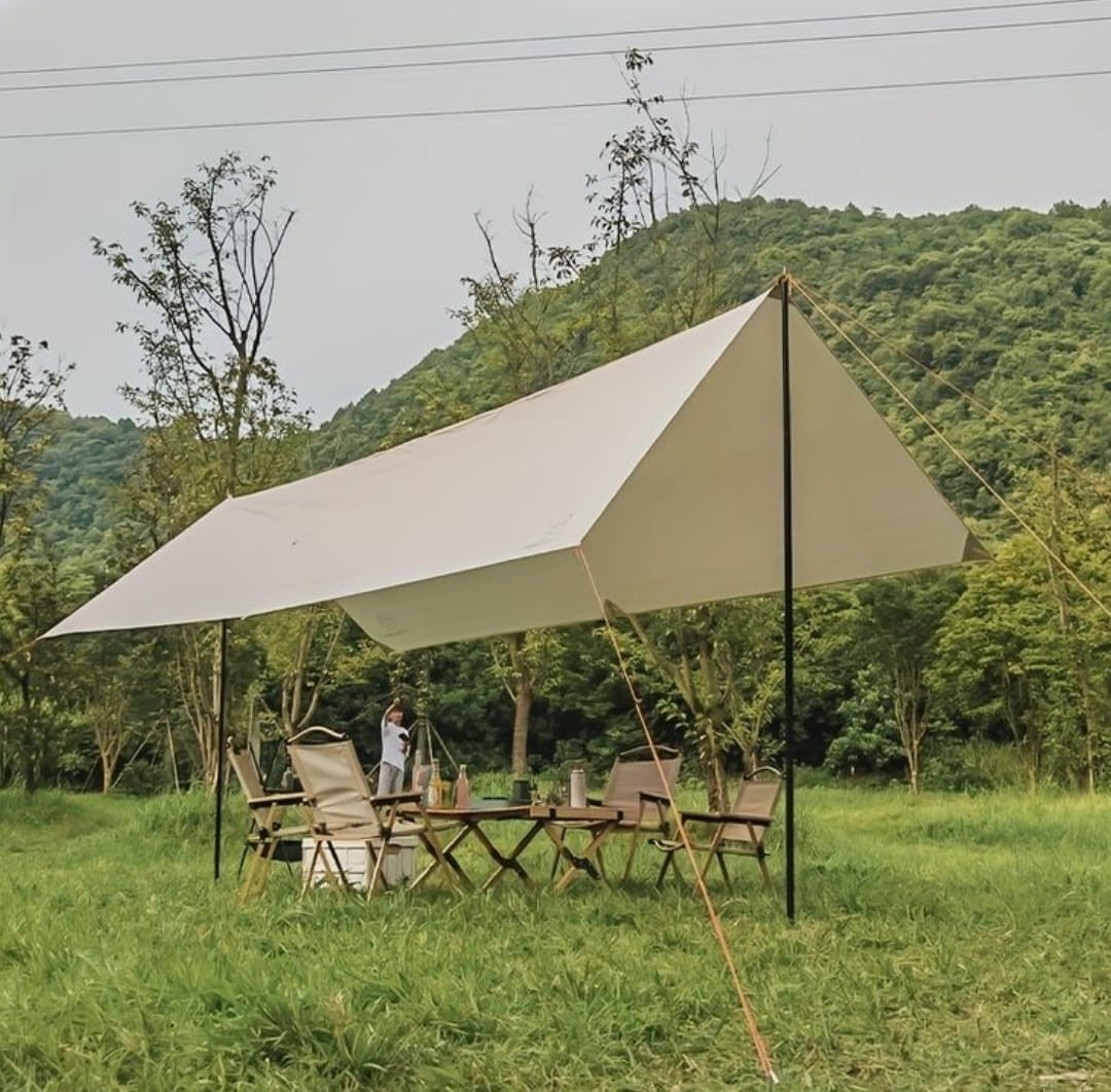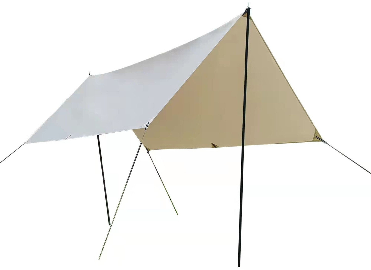 Вы можете выбрать место для установки тента, которое подходит именно для вас. Будь то лес, поляна или берег реки — тент поможет вам создать уютное и комфортное место для отдыха на природе. Мы уверены, что этот тент станет вашим незаменимым помощником в походах и приключениях. Его прочная конструкция и высококачественные материалы гарантируют его долговечность и надежность в любых условиях. Так что, не ждите — приобретайте тент для кемпинга с двумя стойками и наслаждайтесь комфортом и уютом на природе. Тент не требует привязки к деревьям и может быть установлен в поле благодаря высоким стойкам, которые выполняют роль конька. Тент фиксируется оттяжками по краям. |