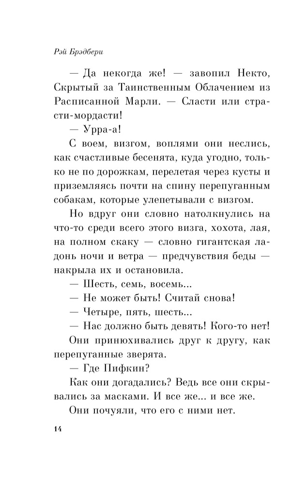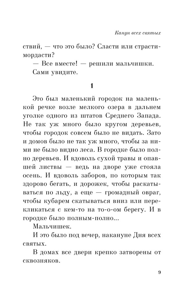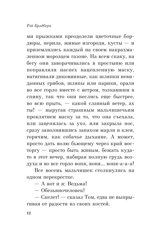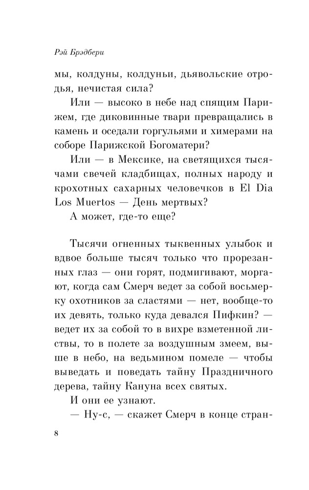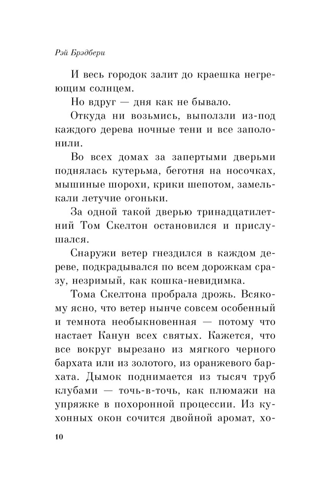 Магическое путешествие во времени к истокам празднества Всех Святых напоминает нам об истинном значении смерти и отношении к ней разных поколений. И когда, если в момент близости печального исхода, проявляется настоящая дружба, смелость и самопожертвование во благо близкого человека? Написанная мальчишеским языком и не по годам наполненная вечной мудростью Брэдбери - эта чудесная книга увлекает в его волшебный мир. Спасибо, Flip!