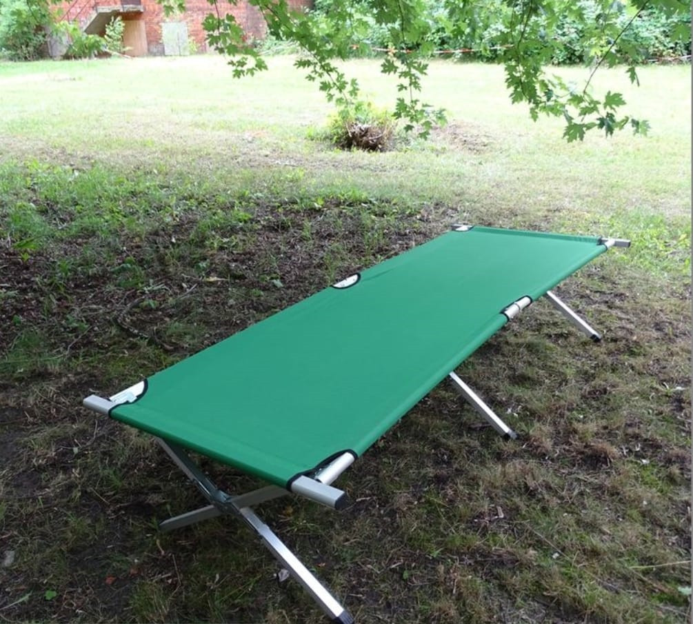 Туристическая раскладушка для сна станет незаменимым помощником в семейном походе или пикнике, с ней Вы забудите о холодной земле и карематах. Кемпинговая раскладушка выдерживает вес до 90 кг. Размеры составляют 70 × 190 × 42 см, что делает его идеальным для комфортного сна. Комплект включает в себя удобную сумку для переноски. Эта кровать идеально подходит для использования в палатке, благодаря своему складному дизайну. Вес кровати составляет всего 4,7 кг, что позволяет легко переносить ее из места в место. Каркас туристической кровати выполнен из алюминия, хорошая устойчивость обеспечивается также за счет специальной треугольной силовой конструкции ножек. Раскладную кровать лежак можно использовать как дополнительное спальное место для гостей либо как место для отдыха на даче.