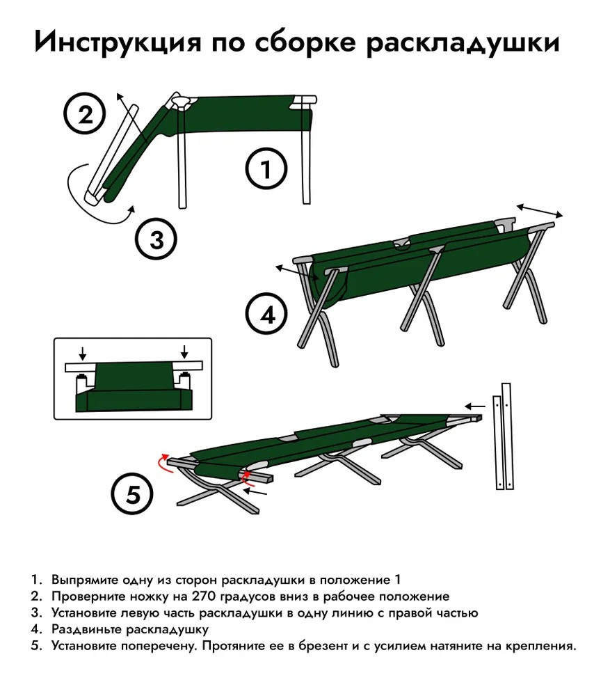 Кровать раскладушка походная отлично подойдет для отдыха на дачном участке, выездного пикника, рыбалки или охоты. Благодаря инновационной конструкции кровать занимает минимум места в багажнике и раскладывается за несколько секунд без особых усилий, с этим справится взрослый и ребенок. Благодаря плотной ткани, вы можете быть уверены в комфорте и отдыхе во время похода. Разложить или сложить раскладушку займет всего 10 секунд, а удобный чехол для переноски облегчит транспортировкую. Она легко помещается в багажник любого автомобиля, что делает ее идеальным спутником для путешествий.