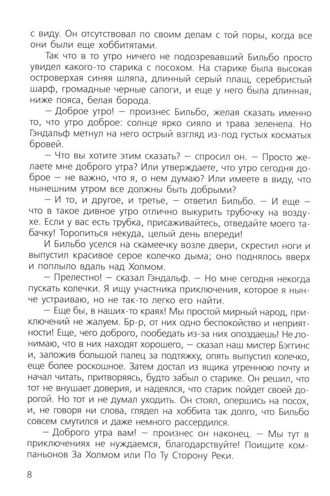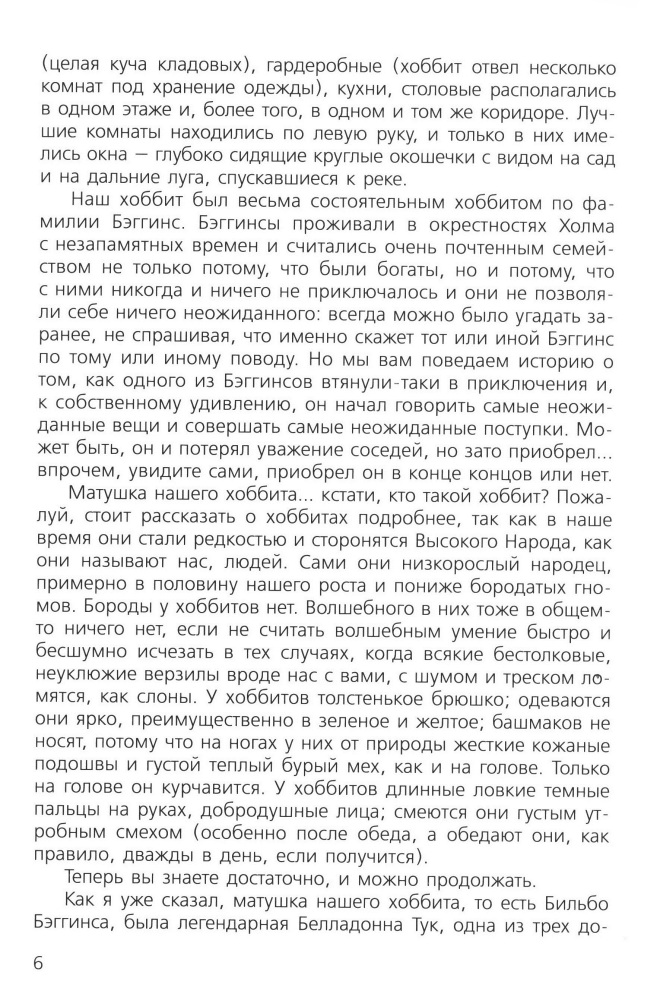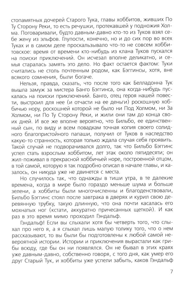 Любимая книга детства, купила из-за сходства со старой книгой 1976 года - тот же классический перевод Н.Л. Рахмановой, те же иллюстрации с Бильбо, очень похожим на Евгения Леонова. Хорошая белая бумага, удобный для чтения шрифт. Советую всем любителям творчества профессора.