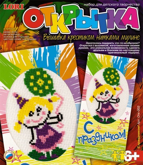 Набор для творчества Открытка. Вышивка крестиком нитками мулине - такая открытка с вышивкой, изготовленная своими руками, станет красивым оригинальным подарком к празднику друзьям и близким! С набором для творчества Lori ребенок в доступной форме освоит навыки вышивания крестиком и создаст красочную вышивку.