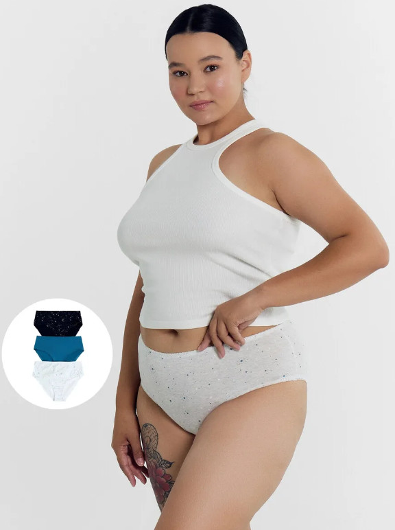 Качество трикотажа супер, приятно к телу, в комплекте 3 шт. Единственное для большого размера, посадка низковата.