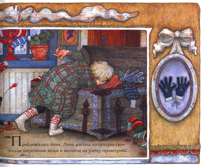 За этой книгой мы охотились. Отзывы о ней были очень высокие. Прочитав, я поняла почему. История очень простая. Для 2х-3х деток, но иллюстрации. На них можно смотреть и смотреть) Со вкусом, с изюминкой) На полях есть рамочки, где как-бы приоткрывается завеса того, что будет на следующей странице. Очень необычно)) Мы рады этой книге, очень. И как раз по сезону к зиме ее и приобрели))