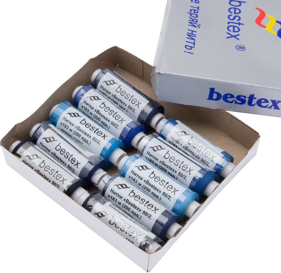 Нитки Bestex № 50/2 в наборе «Синий микс» — прекрасный вариант для шитья, ремонта текстильных изделий, рукоделия. Подойдут для бытовых швейных машин. Изготовлены из 100 % полиэстера, прочные на разрыв и слегка эластичные, равномерные по толщине, имеют правостороннюю крутку. Обработаны силиконом на 5%, поэтому меньше разрываются при работе на высоких скоростях. Не истончаются и не теряют цвет после многократных стирок и от воздействия ультрафиолетовых лучей. Усадка минимальна, ворс и узелки почти не выражены.