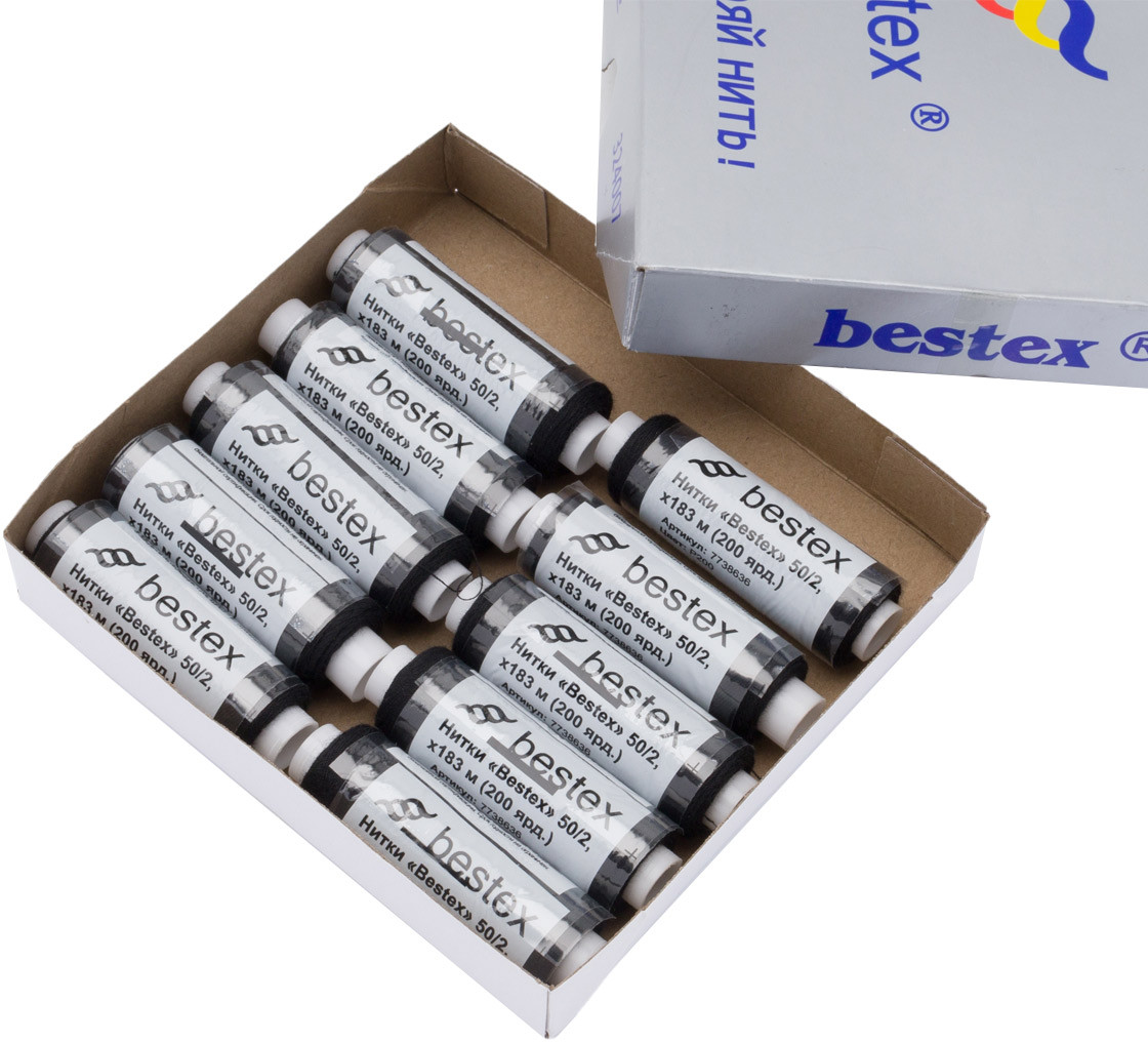 Bestex Набор ниток швейных №50/2, цвет черный-20% +10