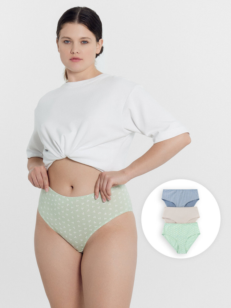 Качество трикотажа супер, приятно к телу, в комплекте 3 шт. Единственное для большого размера, посадка низковата.