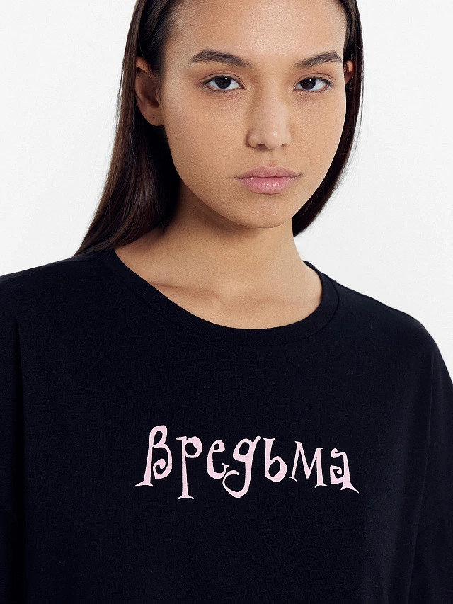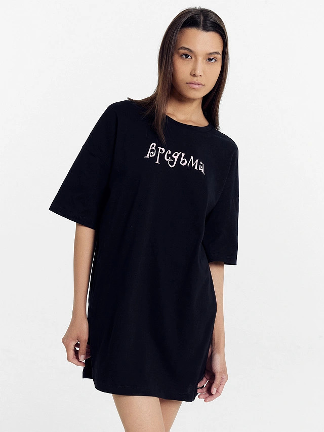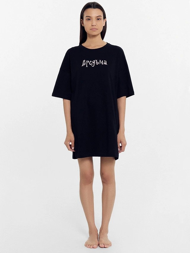 тунику эту брала для дома. качество очень приятное для тела, швы аккуратно обработаны, не содержат колючих ниток. интересная дизайнерская идея с надписью 😁👍🏻 мне понравилось! надпись выполнена термической аппликаций, так что утюгом можно проглаживать это место только с изнанки. мой рост 160 см и ношу 48 размер, но для дома предпочитаю свободную одежду, потому и заказала 50 размер. туника на мне сидит очень свободно, даже через чур, так как в предыдущем комментарии к товару, покупательница написала что туника жутко садится от стирки. это не правда! в размерах она не уменьшилась ни на миллиметр. стираю ее в автомате при 40 градусах, режим - хлопок. минус самой модели туники что она коротковатая. мне это не нравится. а вот рукава можно было бы и покороче... ткань очень мягкая и поверхность собирает на свой черный цвет все пылинки и волоски. у меня дома двое котов с белой шерстью, так их пушинки нещадно липнут к ткани. но в целом, для дома, покупкой я осталась довольна! спасибо флип за хороший товар и быструю доставку. более подробные отзывы на товары можно увидеть в YouTube на канале likas07