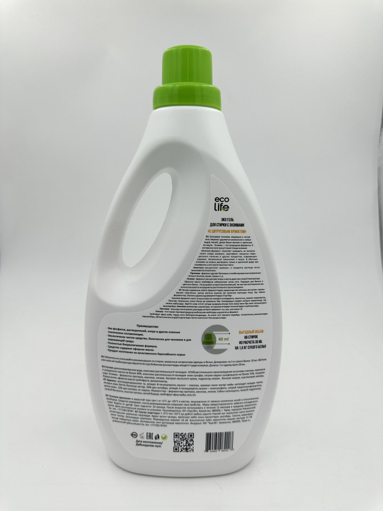 Деионизированная вода, комплекс растительных Н-тензидов - НПАВ растительного происхождения на основе глюкозы, крахмала и кукурузного масла не более 30%, комплекс растительных А-тензидов -коко сульфат, натрия лаурил сульфоацетат не более 15%, пищевая сода. Энзимы - ферменты протеаза, амилаза, липаза. Экстракт мыльного ореха, гидроксид натрия , бензоат натрия, ксантановая камедь, йодид калия, ароматизатор.