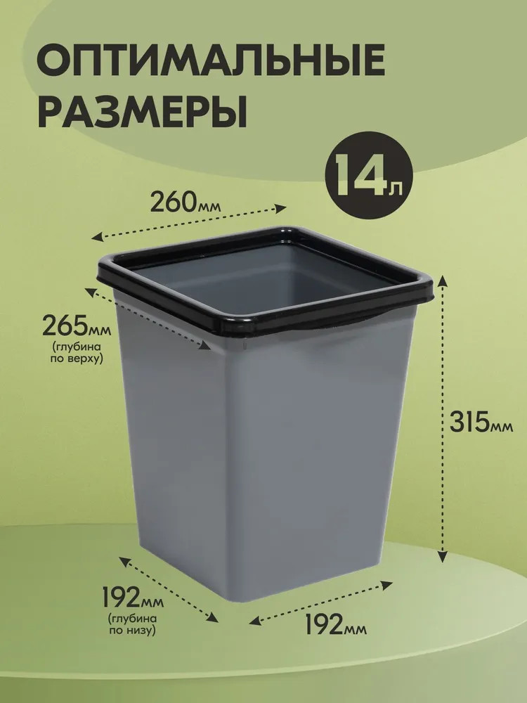 Добротное, удобное ведро. Выбирала без крышки, размер подходящий и по высоте и по объему. Плотный пластик. Все устраивает. Рекомендую.