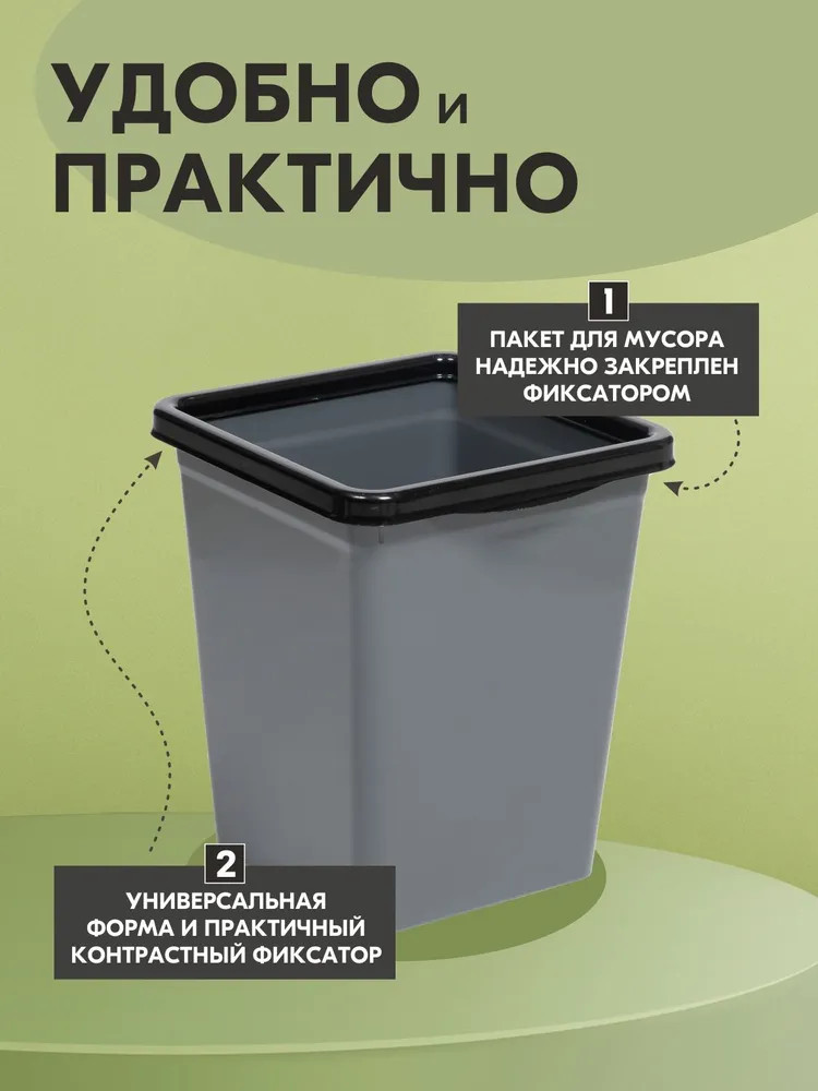 Отличное ведро. Пакет прижимается и никуда не сползает, прекрасно.