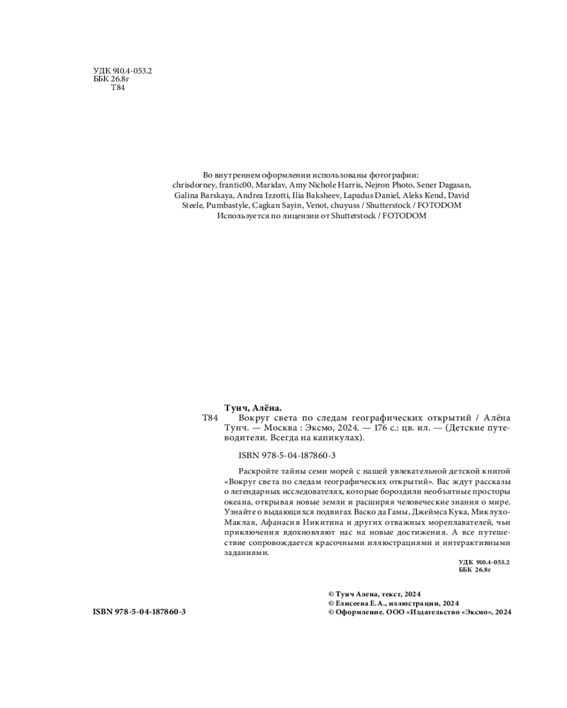 💳 Оплатить за товар можно при получении 🇰🇿 Есть бесплатная доставка по Казахстану 🎁 Копите бонусы с каждой покупки Серия: Детские путеводители. Всегда на каникулах «Вокруг света по следам географических открытий» — невероятное приключение, которое перенесет вас на борт знаменитых кораблей — «Санта-Марии» Колумба, «Крузенштерна», «Хемскерка» капитана Тасмана и многих других. Эта красочная и информативная книга перенесет вас в захватывающий и порой опасный мир мореплавателей, которые осмелились плыть по неизвестным водам. Юные читатели отправятся вместе с викингами в первое путешествие, откроют Новый Свет и совершат кругосветное плавание, которое навсегда изменило наше понимание планеты. |