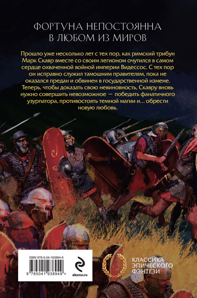 💳 Оплатить за товар можно при получении 🇰🇿 Есть бесплатная доставка по Казахстану от 1 дня 🎁 Копите бонусы с каждой покупки Серия: Классика эпического фэнтези Прошли годы с момента, как Марк Скавр вместе со своим легионом был перенесен в иной мир, полный сражений и магии. Благодаря своим боевым навыкам бывший римский трибун обрел славу, почет и семью. Однако нрав Фортуны никогда не отличался постоянством. Преданный своим близким человеком, Скавр оказывается обвинен в государственной измене. Его надежда на спасение — племянница император Алипия Гавра. И, конечно же, верные солдаты его легиона. |