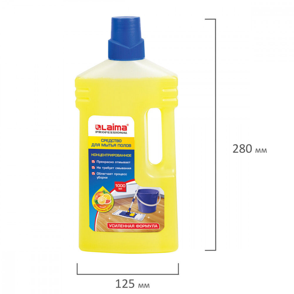 Представляет собой концентрат объемом 1 л. Нейтрализует неприятные запахи, не оставляет разводов. Благодаря усиленной формуле легко справляется с сильными загрязнениями и создаёт на поверхности эффект защитной плёнки от загрязнений и пыли. Имеет pH нейтральный, что позволяет отмывать любые поверхности: линолеум, паркет, ламинат и т.д. Отдушка «Цитрусовый микс». Средство работает в воде любой жесткости и температуры. Нетоксично, полностью безопасно при использовании по назначению. Средство работает в воде любой жесткости и температуры. Нетоксично, полностью безопасно при использовании по назначению.