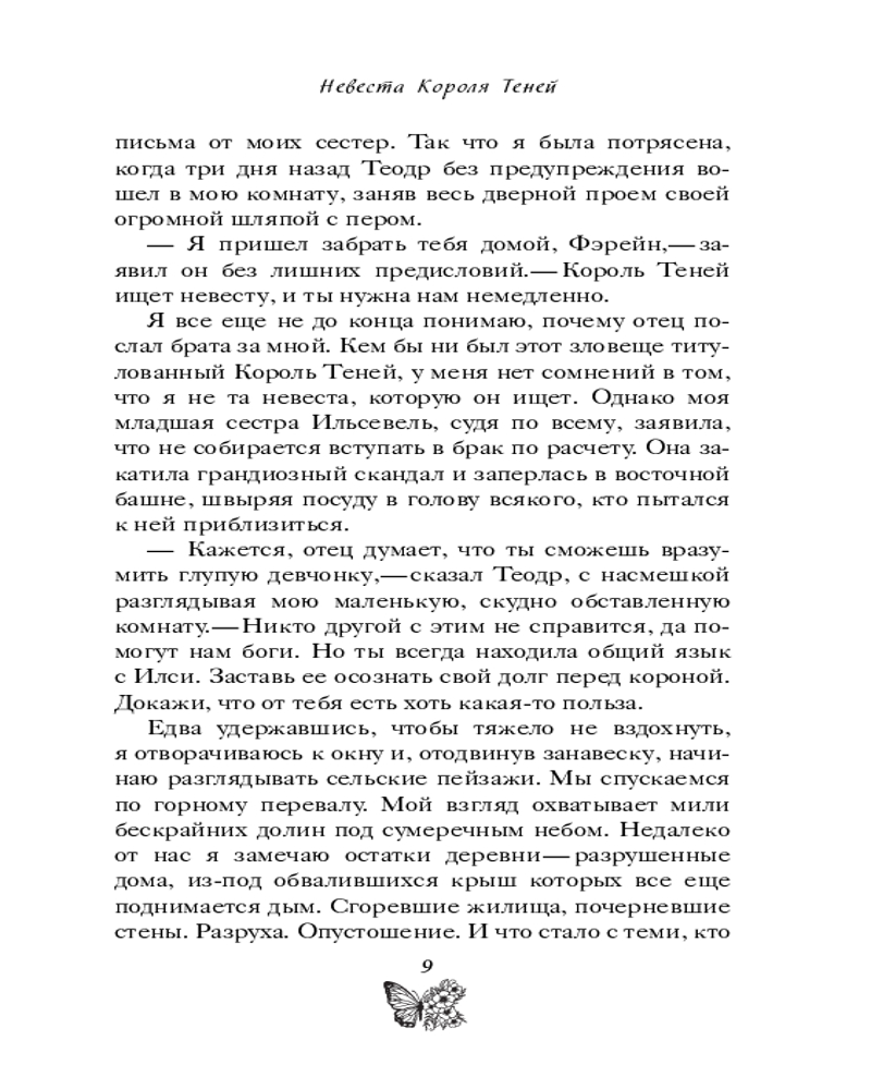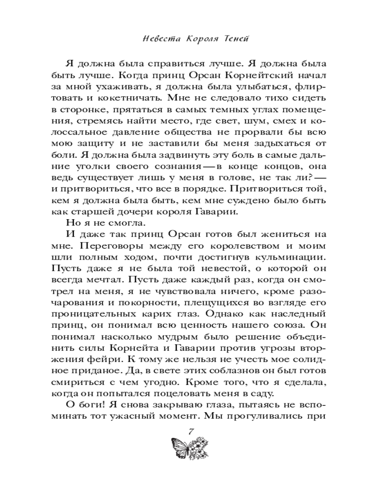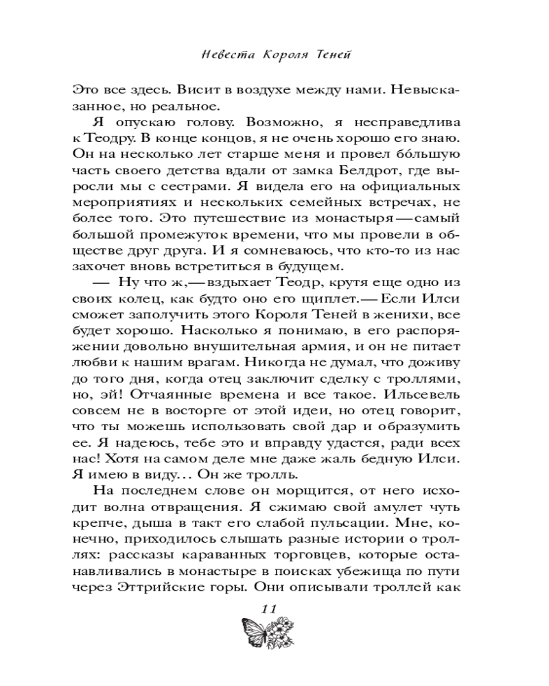Серия: Young Adult. Король Теней Принцесса-неудачница, скрытая от чужих глаз. Король-полукровка, вынужденный унаследовать трон. Брак, который мог бы спасти оба королевства... или разрушить их сердца. Принцесса Фэрейн живет в монастыре, вдали от своего дома и близких, расплачиваясь за ошибку, что чуть не уничтожила ее народ. Дар богов, позволяющий чувствовать эмоции других людей, стал для Фэрейн проклятием, а потому девушка вынуждена уступить место на троне младшей сестре. Когда привлекательный и загадочный Король Теней приезжает искать невесту, Фэрейн ничуть не удивляется тому, что его выбор падает на сестру. Хоть Король и не горит желанием жениться на обычной девушке, он готов сделать все необходимое ради своего народа. Фор должен привлечь людских магов, чтобы народ троллей не обратился в камень. Стоит только юноше встретиться с озорной принцессой Ильсевель, он тут же дает согласие на брак. Однако почему же Король, способный управлять тенями, никак не может выбросить из головы глаза Фэрейн? |