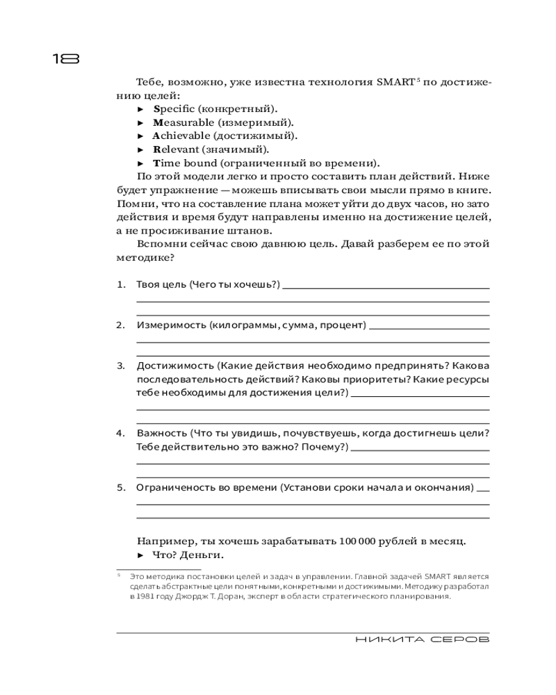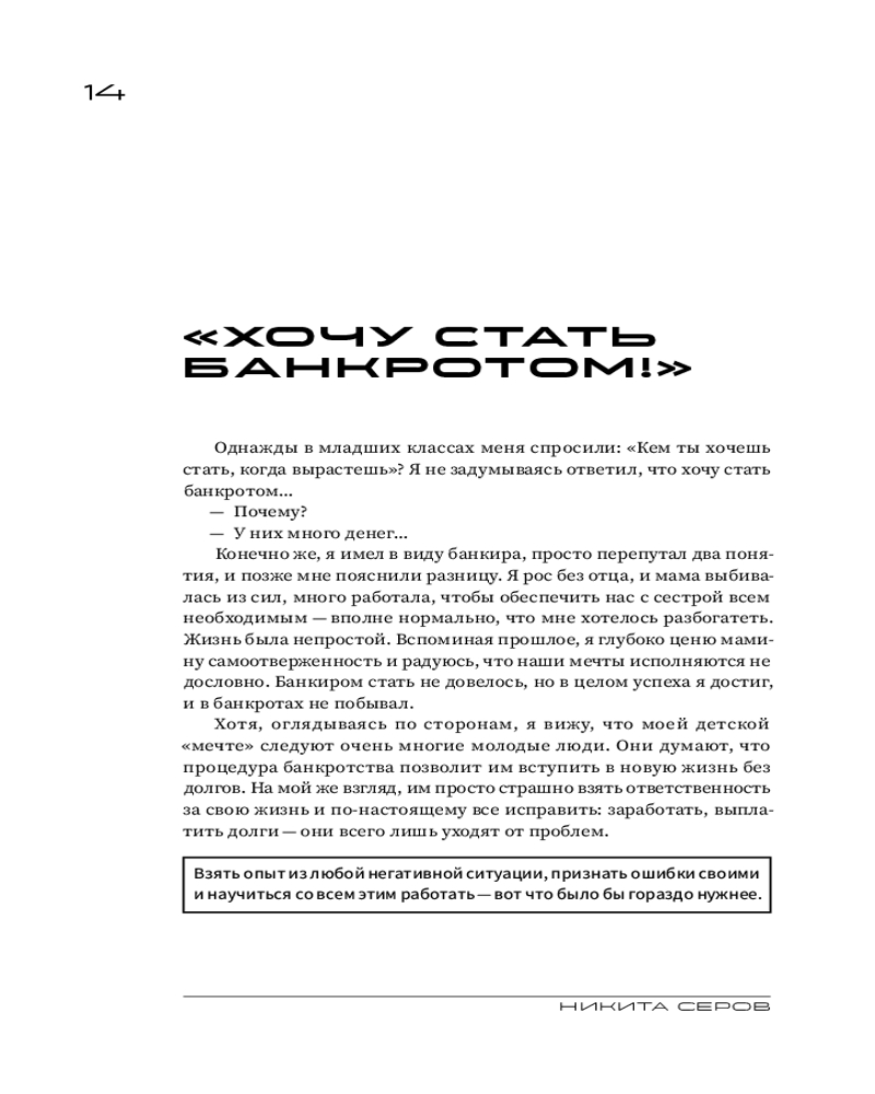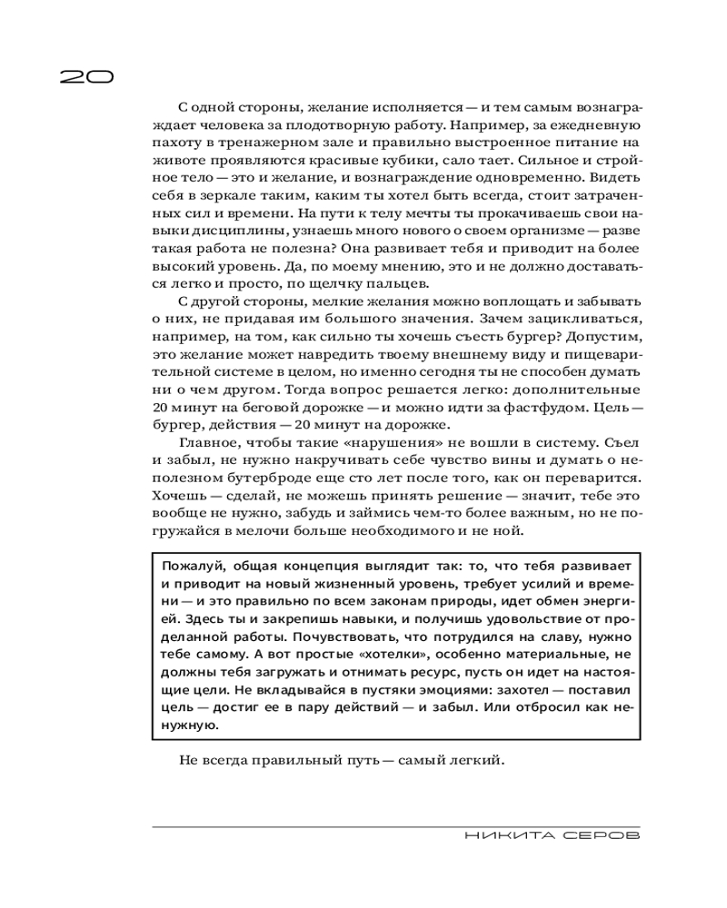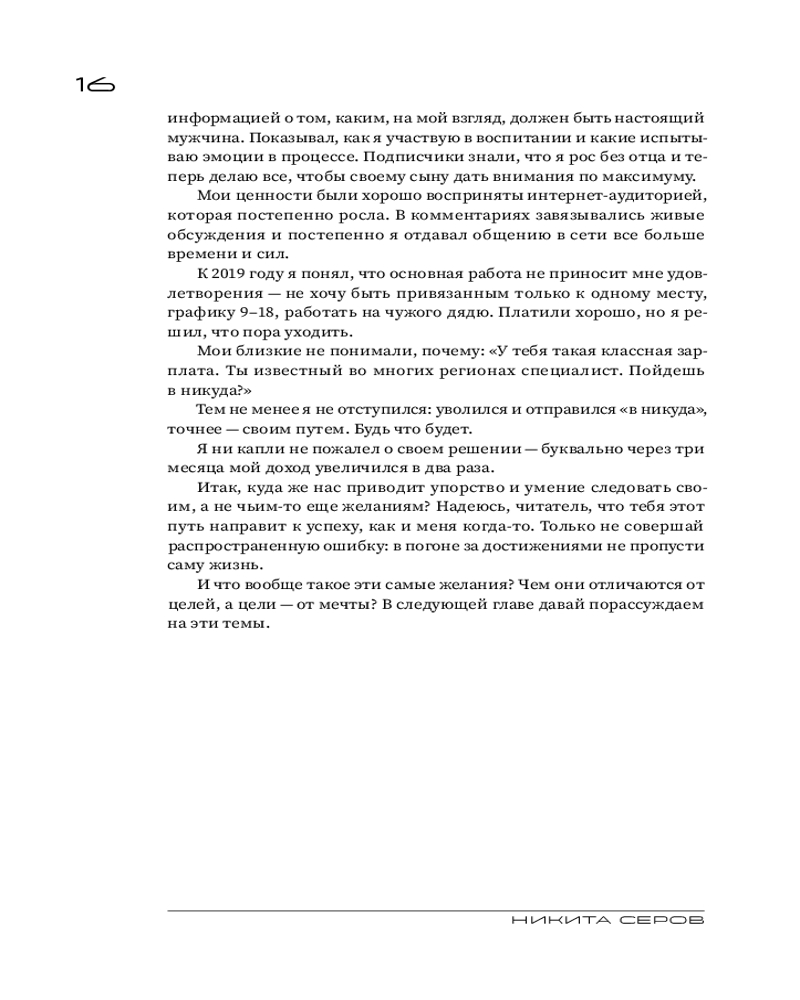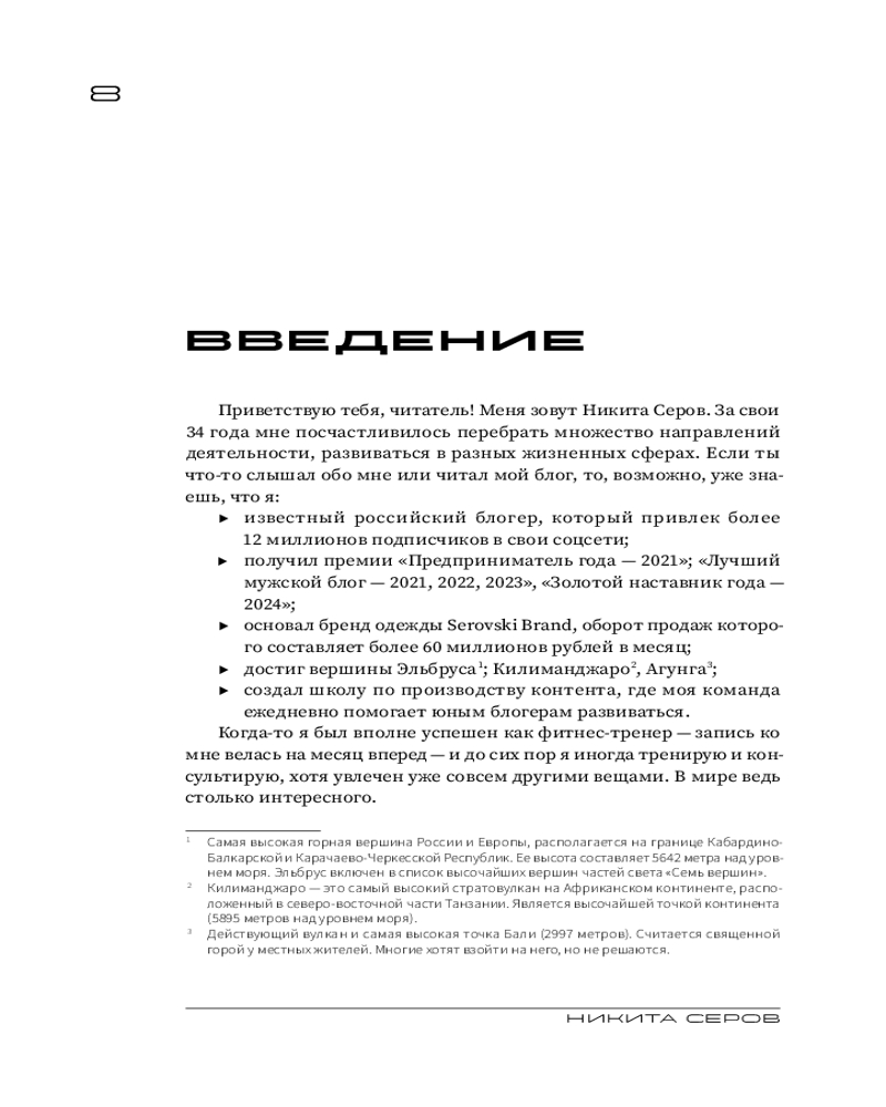 Серия: Говорят эксперты. Практичные книги от специалистов своего дела Путь от обычного парня, выросшего в городе Иваново, до узнаваемой медийной личности оказался сложным и потребовал крепкой силы воли, стойкости характера и, безусловно, веры в себя! Сегодня Никита — основатель успешного бренда одежды Serovski, создатель трех онлайн-школ и покоритель трех вершин (Килиманджаро, Эльбрус и Агунг). Этот перечень можно продолжать бесконечно, потому что главная отличительная черта Никиты — Жажда жить! Он настоящий мотиватор и двигатель, для которого нет пределов в личном развитии, кроме, возможно, полета в космос. Хотя, если захотеть... В книге Никита расскажет об интересных моментах своего жизненного пути, о том, как он пережил болезненный развод, о людях, на которых он оказал влияние и которые оказали влияние на него, а также предложит упражнения, которые помогут вам разобраться, кто вы на самом деле, какая она, жизнь вашей мечты, и как к ней прийти. |
