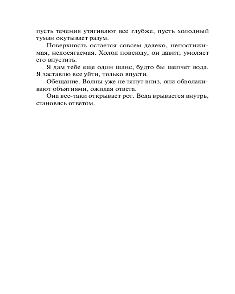 Книга очень интересная, сюжет ничуть не хуже книг Кинга. Читается легко и быстро. Надеюсь, что автор продолжит писать в подобном стиле. Переплёт мягкий, страницы серые, а шрифт удобный.