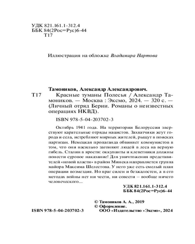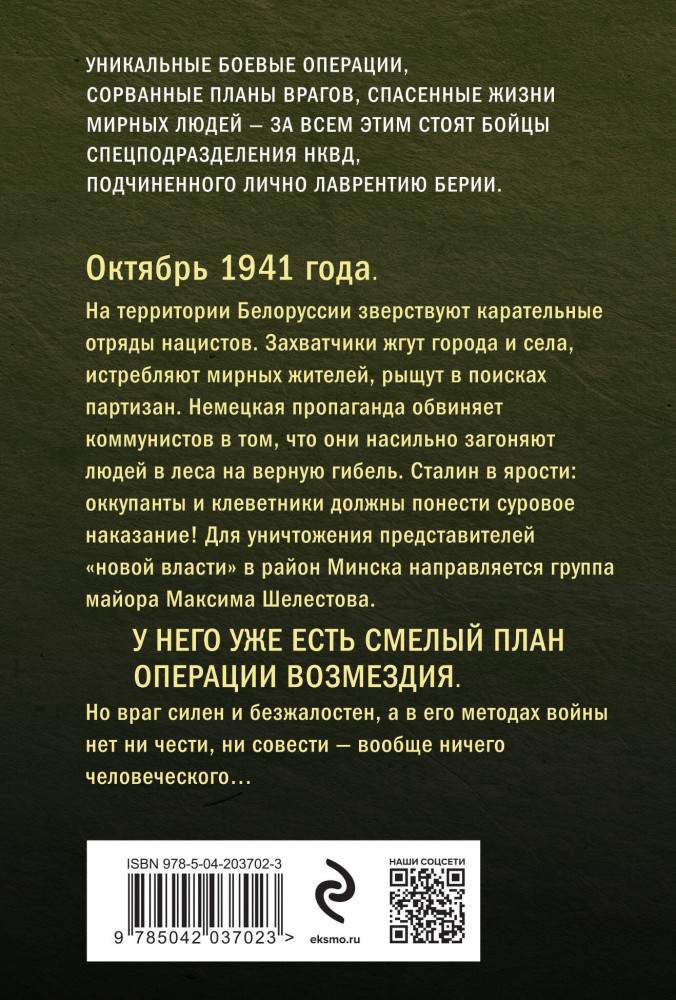 Красные туманы ПолесьяАлександр Александрович Тамоников В данный момент этот товар отсутствует в продаже. Возможно, у нас найдется аналогичный или похожий товар здесь. Серия: Личный отряд Берии. Романы о неизвестных операциях НКВД Октябрь 1941 года. На территории Белоруссии зверствуют карательные отряды нацистов. Захватчики жгут города и села, истребляют мирных жителей, рыщут в поисках партизан. Немецкая пропаганда обвиняет коммунистов в том, что они насильно загоняют людей в леса на верную гибель. Сталин в ярости: оккупанты и клеветники должны понести суровое наказание! Для уничтожения представителей «новой власти» в район Минска направляется группа майора Максима Шелестова. У него уже есть смелый план операции возмездия. Но враг силен и безжалостен, а в его методах войны нет ни чести, ни совести — вообще ничего человеческого... |