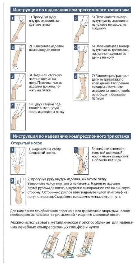 • классы компрессии: 1 класс (18-21 мм рт.ст.), 2 класс (22-32 мм рт.ст.);