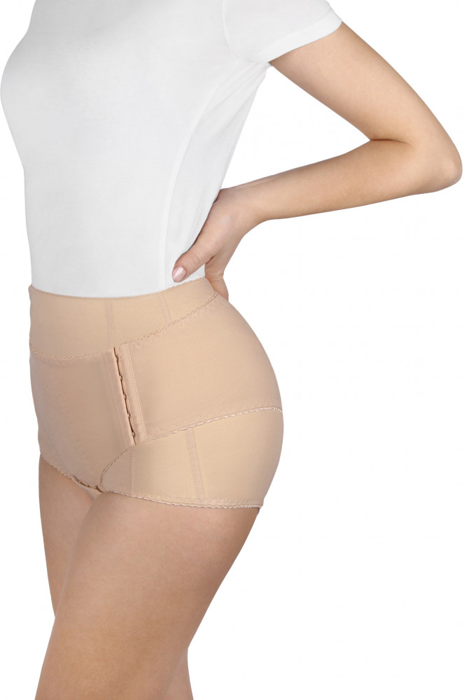 Бандаж при опущении внутренних органов ОВО-445 применяется при опущении и выпадении органов малого таза. Бандаж изготовлен в виде трусов с высокой талией из эластичного материала с высоким содержанием хлопка, имеет съемный пелот в кармашке нижней части живота и пелот в паховой области. Отстегивающаяся ластовица на застежках-кнопках, высокое содержание хлопка в эластичных материалах и особая технология обработки швов обеспечивают отличные гигиенические свойства, максимальный комфорт и удобство в эксплуатации бандажа.