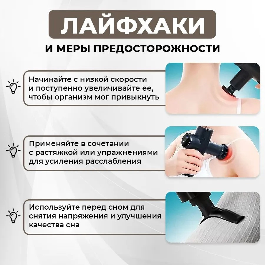 Массажер для тела перкуссионныйВ данный момент этот товар отсутствует в продаже. Возможно, у нас найдется аналогичный или похожий товар здесь. Серия: Массаж Универсальный перкуссионный массажер поможет эффективно размять мышцы всего тела. 30 режимов работы, отсутствие шума, 6 насадок для всех частей тела, сенсорное управление, мощный аккумулятор и удобная зарядка – всё это сделало массажное вибрирующее устройство идеальным! Ручной электро вибромассажер-пистолет отличается своей универсальностью. Подходит для всех групп мышц. Можно применять для ног, шеи, рук, ног, живота, поясницы, спины и позвоночника. Улучшает кровообращение, избавляет от боли в мышцах и активизирует движение лимфы. В комплекте идёт 6 насадок. Среди них круг для икроножных мышц, бедер, ягодиц, спины и плеч. Вилка – для шейного отдела головы от остеохондроза и зоны вокруг позвоночника. Гироскоп – для деликатного массажа мягких тканей от отеков. Сфера – для попы против целлюлита, рук, груди, бедер и спины, чтобы убрать усталость. Пуля – для ягодиц и спины. Т-образная – для бицепса, трицепса, колена, рук и бедер. |