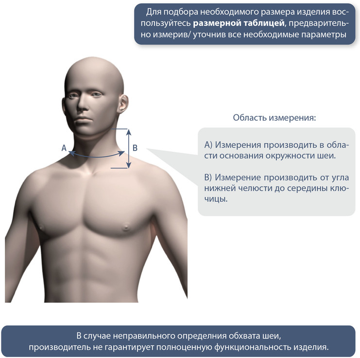 • выбрать необходимую высоту воротника, измерив длину от ветви нижней челюсти до ключицы;